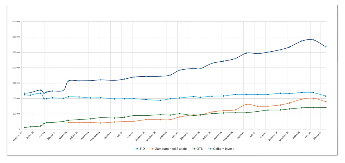 Moje investiční strategie ale zůstává dlouhodobě stejná – jak pro českou část portfolia vedenou u Fio, tak pro zahraniční investice přes XTB. Stejně jako trhy i moje portfolio od konce minulého roku mírně kleslo. Beru to však jako přirozenou součást investování.
